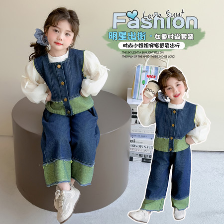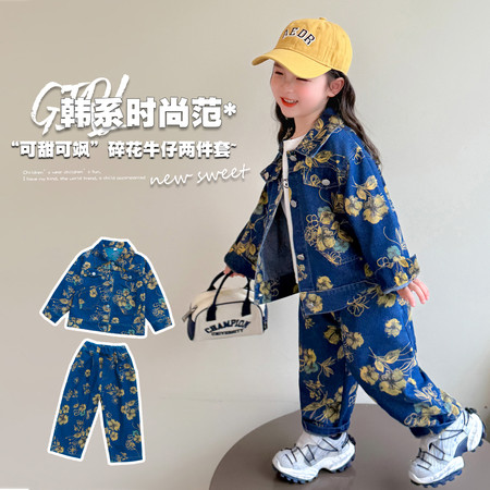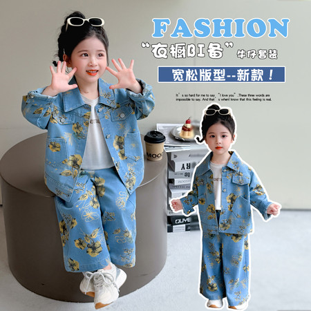 1*9下载视频“碎花牛仔浅色阔腿裤套装”