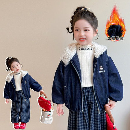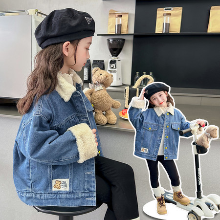 1*9下载视频“小熊贴标牛仔加绒外套”